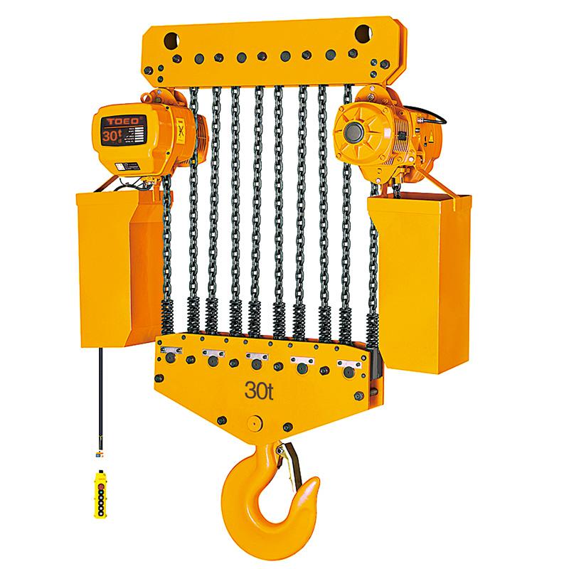 15噸電動(dòng)葫蘆是配有6根起重鏈條,兩個(gè)鏈條帶,兩個(gè)電動(dòng)小跑車,單速型環(huán)鏈電動(dòng)葫蘆廣泛適用于工廠、 礦山、建筑工地、倉庫、港口等場所。